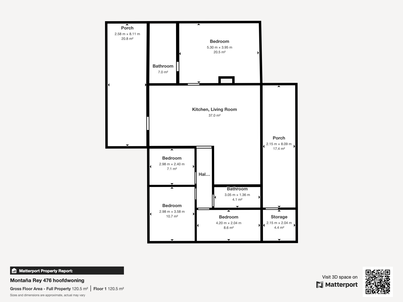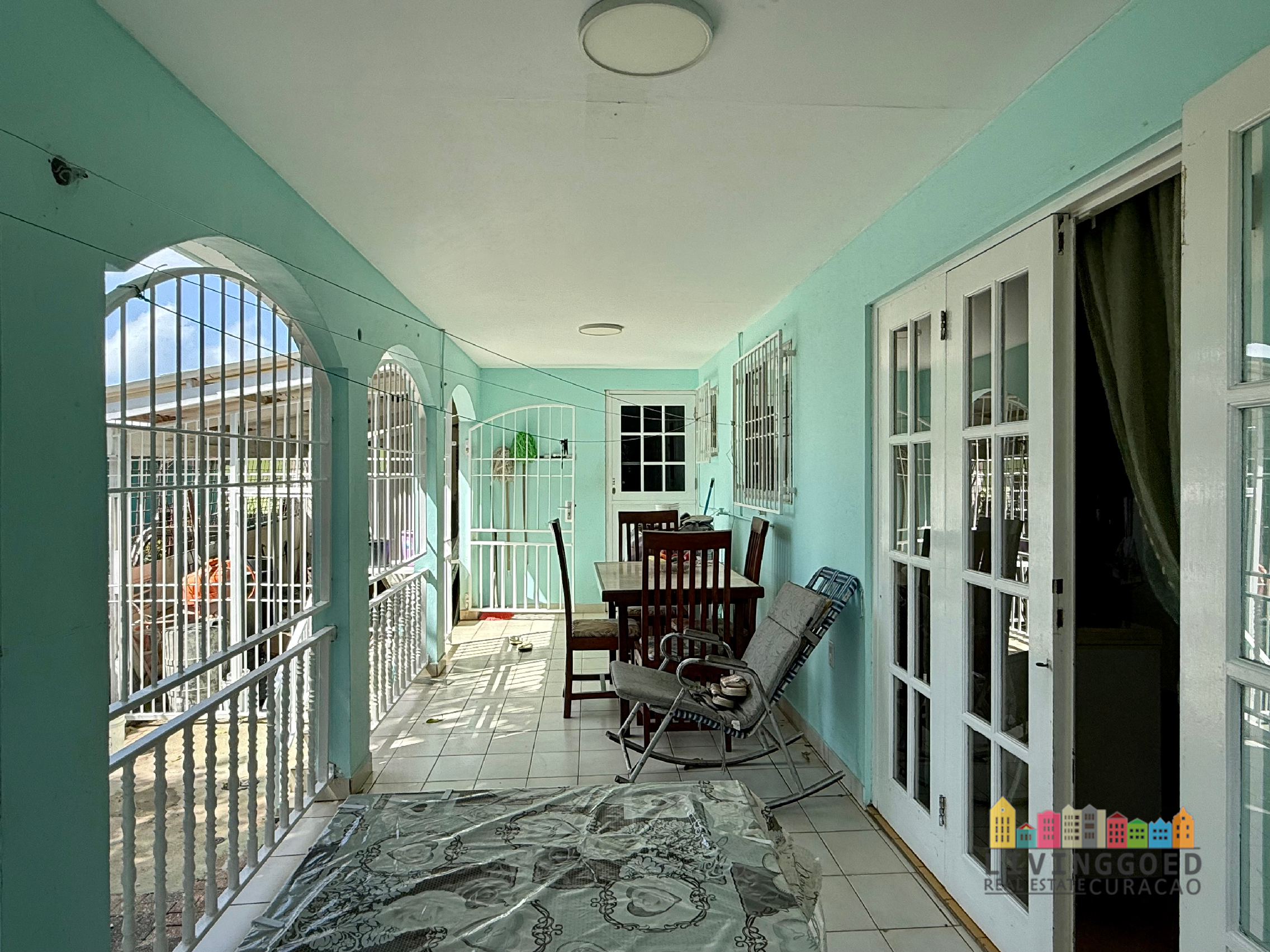 De hoofdwoning bestaat uit 4 slaapkamers, 2 badkamers, een carport, een garage en een voor- en achterporch. Het appartement heeft een eigen ingang en heeft 3 slaapkamers, 2 badkamers, een voorporch. De hoofdwoning en het appartement hebben elk een eigen automatische poort.